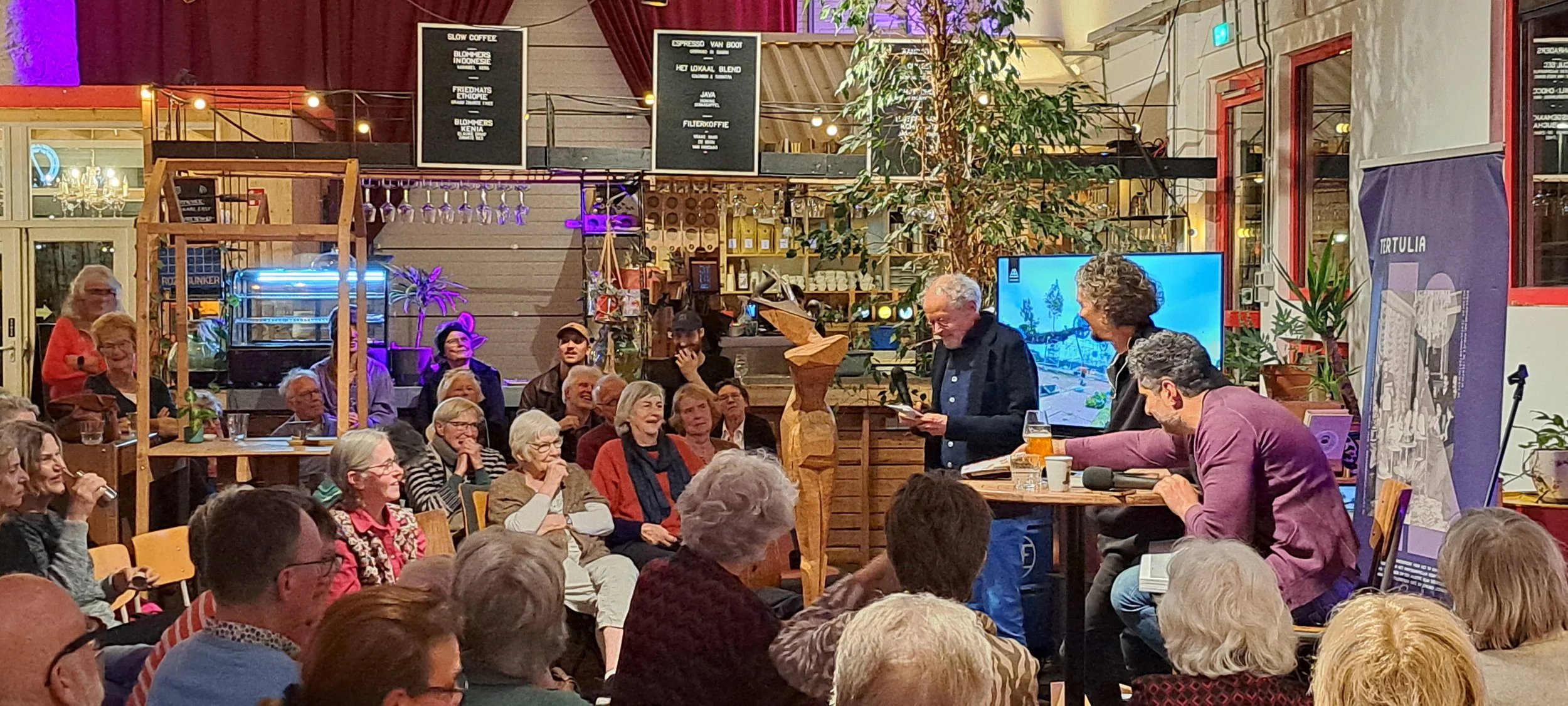 Voor een volle en levendige avond met Thijs Tromppert stroomde op 13 april 2026 het Kunstcafé van Tertulia vol. In een open gesprek met moderator Juan Carlos Salvia, verrijkt met vragen uit het publiek, ontvouwde zich een rijk gesprek over kunst, creatie en maakenergie. Met de aandachtige aanwezigheid van kunstenaars, vrienden en bekenden uit Amersfoort konden we genieten van Thijs’ authentieke manier van zijn. Daarnaast klonk er een bevlogen oproep voor Future Village door Ron Jagers en Chantal van Kempen (Kultlab). Een avond die blijft hangen. De terugblik van Elly van Eijk volgt. Voor nu alvast de foto’s en info.
