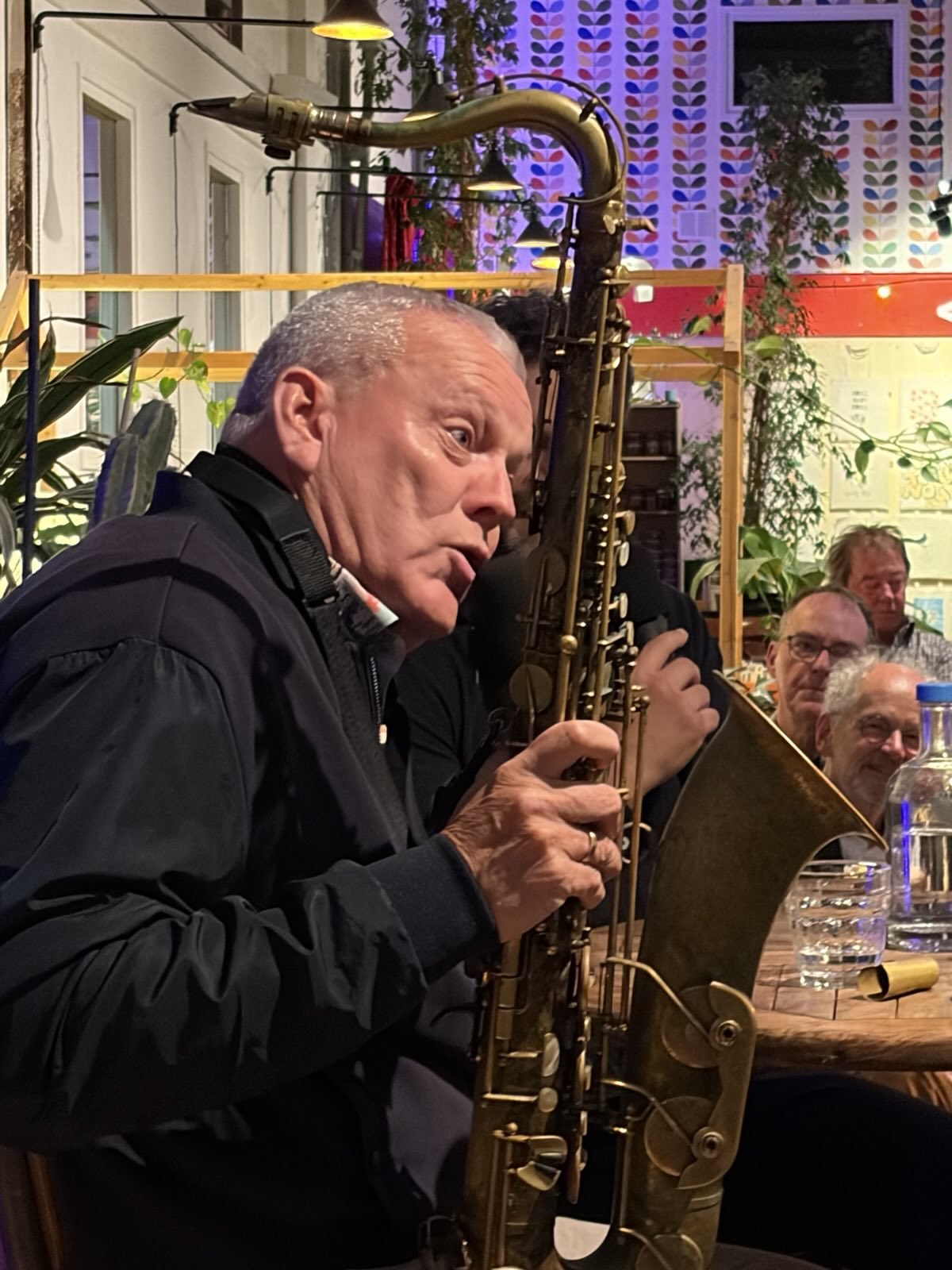 Het was een luisterrijke avond met Alexander Beets in de hoofdrol. Met anekdotes doorspekt vertelde hij over zijn familieachtergrond, zijn leven als muzikant, docent, festivalorganisator en zijn grote passie voor jazz. De avond eindigt heel toepasselijk met live-muziek en improvisaties van Alexander Beets (saxofoon), Fabrizio Quissanga (gitaar) en Juan Carlos Salvia (zang)